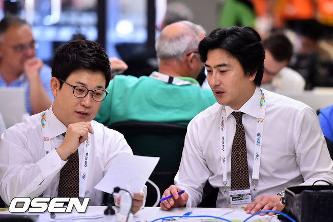 17일 오후(이하 한국시간) 호주 브리즈번 스타디움에서 2015 AFC 호주 아시안컵대회 조별리그 최종전 한국과 호주의 경기가 열릴 예정인 가운데 MBC 안정환과 김성주 축구 해설위원이 얘기를 나누고 있다.