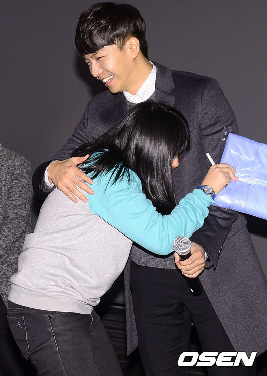 17일 오후 서울 마포구 CGV 홍대점에서 열린 영화 '오늘의 연애' 무대인사에서 배우 이승기가 무대 인사에서 팬서비스를 하고 있다.