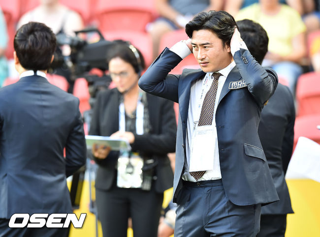 17일 오후(이하 한국시간) 호주 브리즈번 스타디움에서 2015 AFC 호주 아시안컵대회 조별리그 최종전 한국과 호주의 경기가 열릴 예정인 가운데 MBC 안정환 해설위원이 머리를 매만지고 있다.