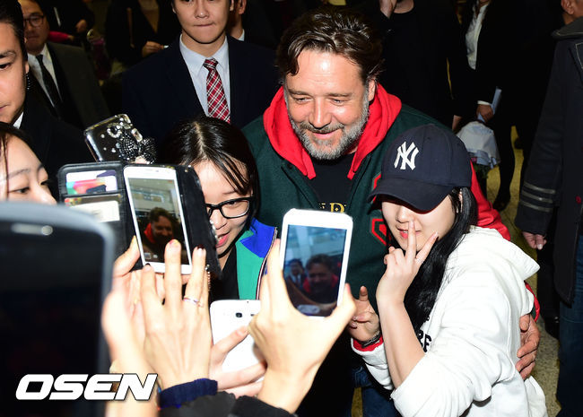 할리우드 배우 러셀 크로우가 영화 '워터 디바이너' 홍보차 17일 오후 시드니에서 인천국제공항을 통해 입국했다.