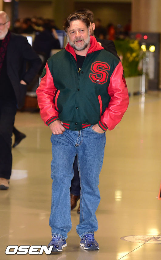 '첫 내한' 러셀 크로우,'청바지에 야구점퍼로 편안함 추구!'