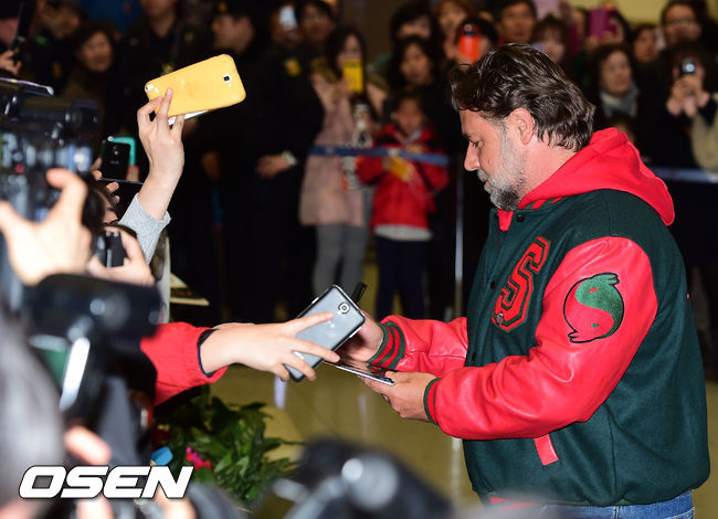 할리우드 배우 러셀 크로우가 영화 '워터 디바이너' 홍보차 17일 오후 시드니에서 인천국제공항을 통해 입국했다.