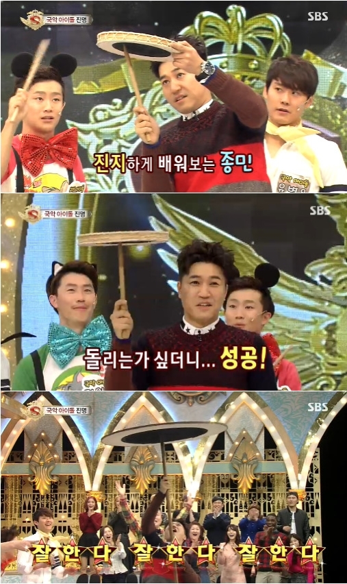 이날 패널들은 진명으로부터 남사당놀이의 하나인 버나 돌리기를 배웠다. 자신만만한 이국주는 실패했지만, 김종민은 의외의 실력을 보여줬다. 버나 돌리기에 성공한 것. 심지어 진명의 멤버에게 버나 건네기도 성공했다. 김종민은 큰 사이즈의 버나 또한 회전시켜 박수 갈채를 받았다. 이에 진명 멤버는 김종민에게 스카우트를 제의하기도 했다.