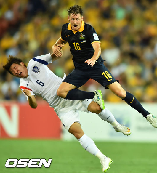 악재는 호주전에서도 이어졌다. 박주호는 전반 29분 공중볼을 경합하는 과정에서 네이든 번스의 팔꿈치에 얼굴을 얻어맞았다. 누가 봐도 명백히 고의적인 반칙이었다. 코피를 쏟은 박주호는 들것에 실려 나갔다. 이후 박주호는 다시 경기에 나서는 투혼을 발휘했다. 하지만 실점위기를 넘긴 뒤 한국영과 바통을 터치했다.