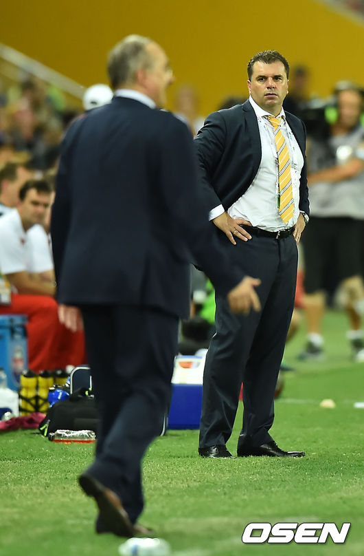 후반 경기 종료가 얼마 남지 않았을 때 호주 안제 포스테코글루 감독이 슈틸리케 감독을 바라보고 있다. / rumi@osen.co.kr