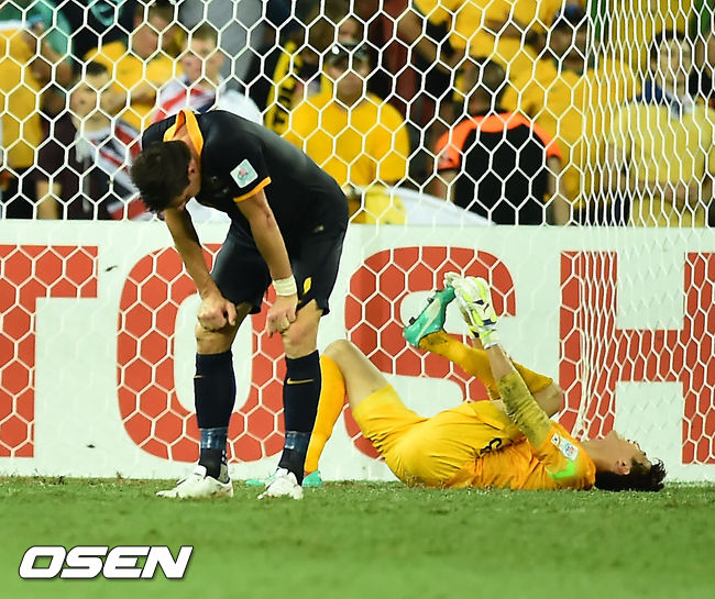 경기를 마치고 김진현이 쓰러져 고통을 호소하고 있다. / rumi@osen.co.kr