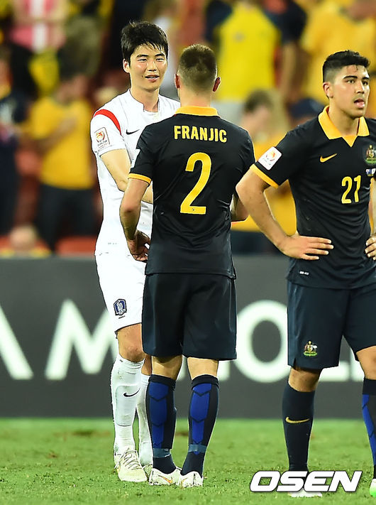 경기를 마치고 기성용이 호주선수들과 악수를 나누고 있다. / rumi@osen.co.kr