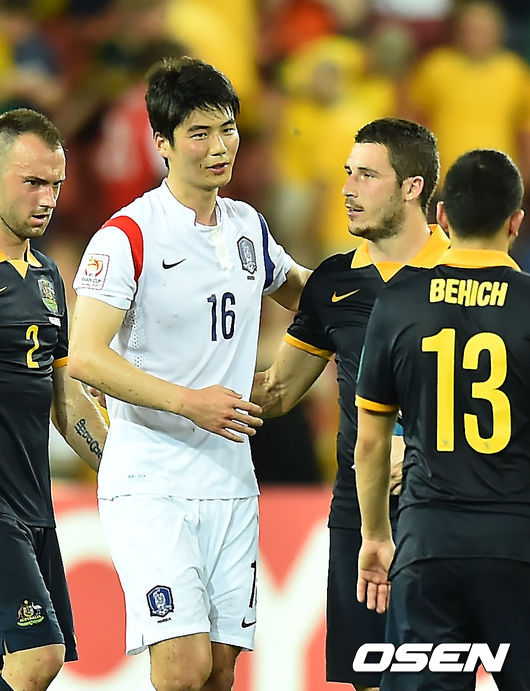 경기를 마치고 한국 기성용이 호주 매슈 레키와 악수를 나누고 있다. / rumi@osen.co.kr