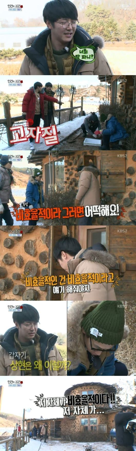 이날 멤버들은 야외 냉장고를 만들기로 했다. 은지원 봉태규 허태희 등은 땅을 파서 스티로폼 상자를 묻기로 했다. 하지만 윤상현은 “너무 비효율적이다”라고 말했다.
