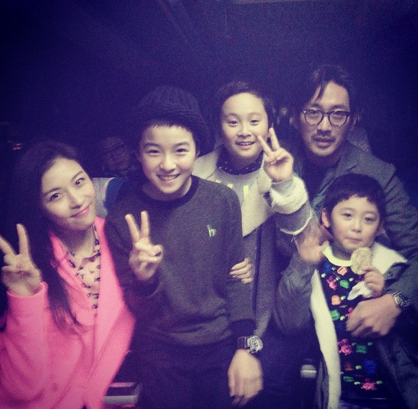 배우 하지원과 하정우가 아역 배우들과의 인증샷을 공개했다.