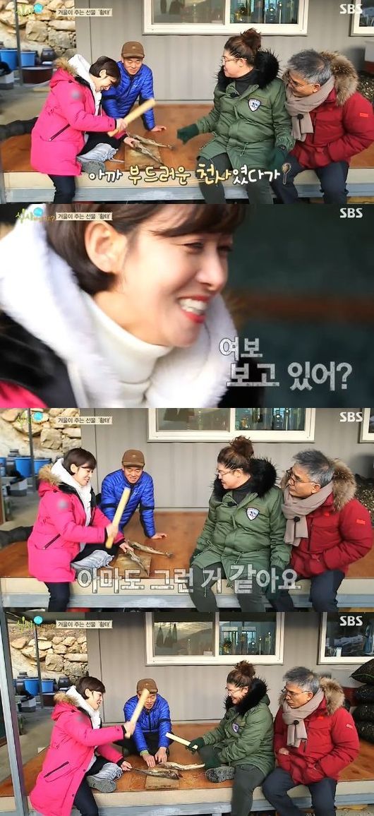또 그는 "남편 생각하면서 두드리는 거냐"고 묻자 "아마도 그런 것 같다"며 황태 손질에 더욱 박차를 가했다.
