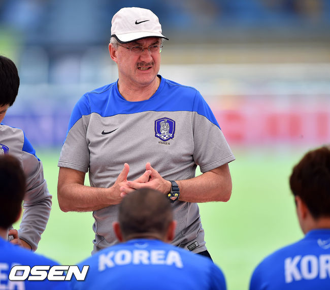 18일 오전 (이하 한국시간) 호주 브리즈번 퀸슬랜드 스포츠&애틀레틱 센터에서 2015 AFC 호주 아시안컵대회 한국대표팀이 예선 3차전 호주와의 경기를 마친 다음날 회복훈련을 가졌다. 슈틸리케 감독이 선수들과 미팅을 갖고 있다.
