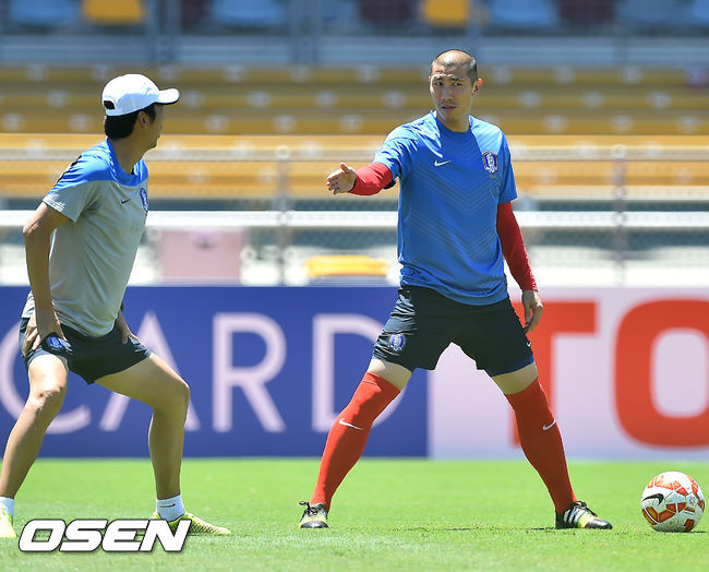 18일 오전 (이하 한국시간) 호주 브리즈번 퀸슬랜드 스포츠&애틀레틱 센터에서 2015 AFC 호주 아시안컵대회 한국대표팀이 예선 3차전 호주와의 경기를 마친 다음날 회복훈련을 가졌다. 차두리가 훈련때 얘기를 하고 있다.