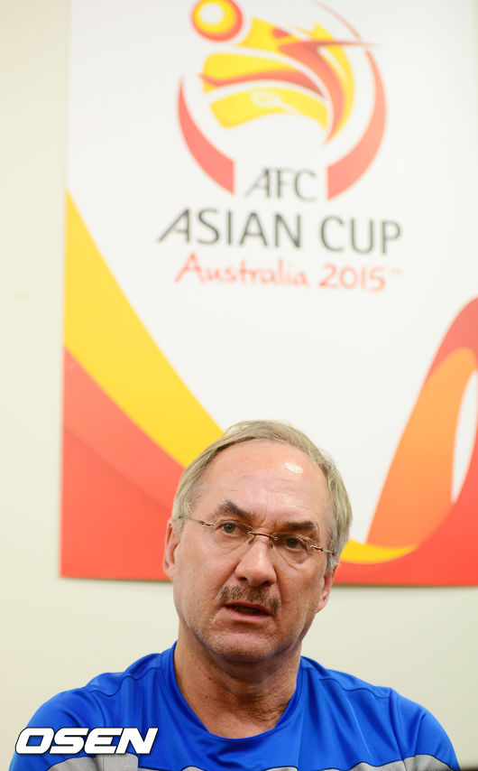 18일 오전 (이하 한국시간) 호주 브리즈번 퀸슬랜드 스포츠&애틀레틱 센터에서 2015 AFC 호주 아시안컵대회 한국대표팀이 예선 3차전 호주와의 경기를 마친 다음날 회복훈련을 가졌다. 슈틸리케 감독이 취재진과 인터뷰를 갖고 있다.