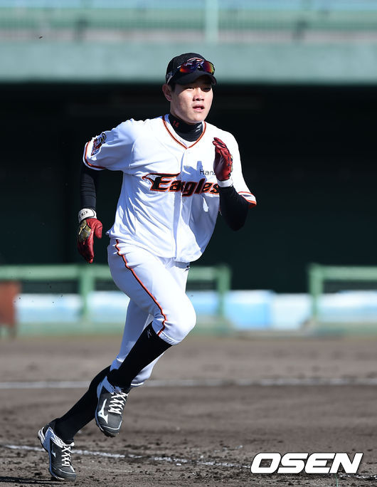 한화 강경학이 주루 훈련을 하고 있다.
