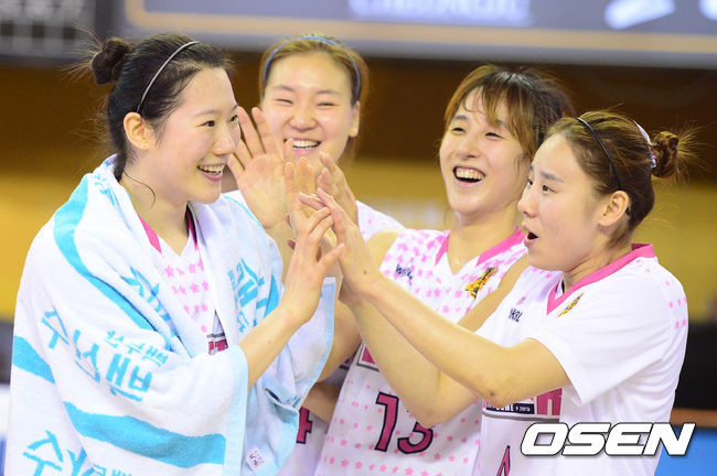 MVP 강아정이 동료선수들의 축하를 받고 있다./jpnews@osen.co.kr