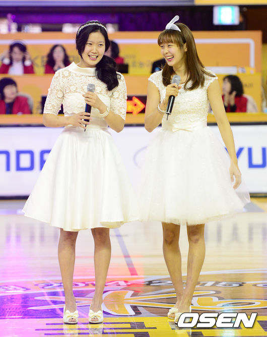 홍아란, 신지현이 '거위의 꿈'을 열창하고 코트를 나서고 있다./jpnews@osen.co.kr
