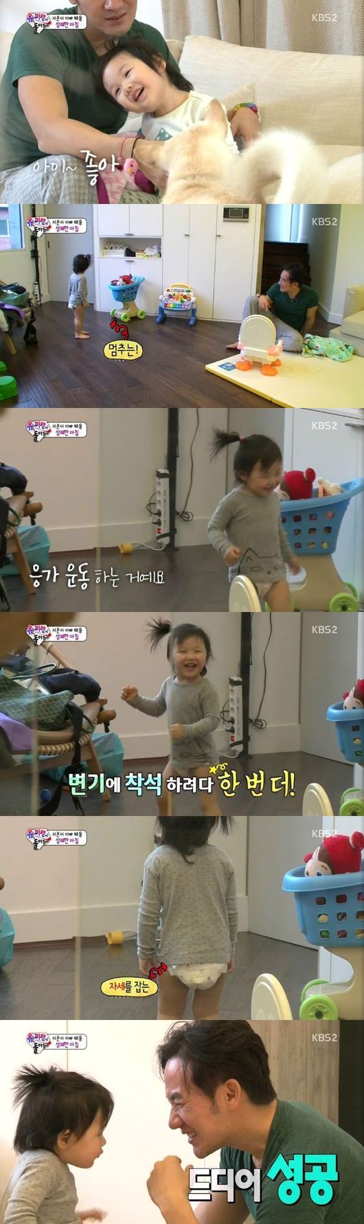 배우 엄태웅의 딸 지온이 해맑은 표정으로 응가 운동을 했다.