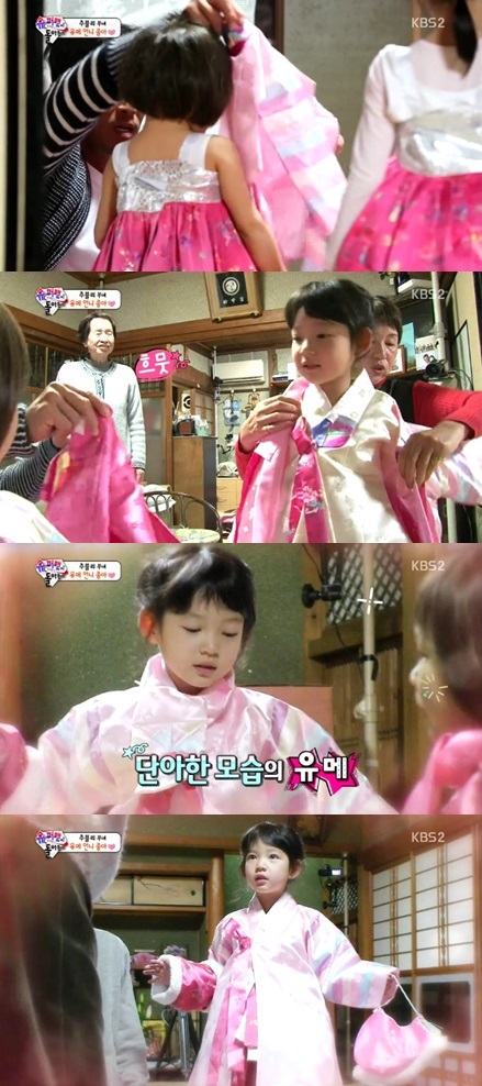 '슈퍼맨' 추사랑이 사촌 유메와 한복을 입고 변신했다.