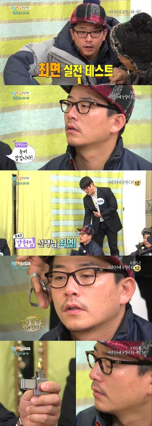 18일 오후 방송된 KBS 2TV 예능프로그램 '해피선데이-1박2일 시즌3'(이하 '1박2일')에서는 저녁식사를 위한 눈썰미 3종 게임의 마지막 '진짜 최면술사를 찾아라'를 푸는 멤버들의 모습이 그려졌다.