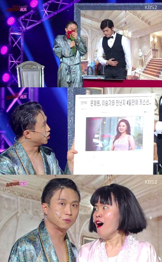박성광은 "이승기, 최근에 기사 났더라. 문채원과 4일 만에 키스"라는 기사를 보여주고, 박지선은 "난 승기와 4분 만에 키스했다. 승기 키스 실력, 내가 가르친 거다"고 말했다.