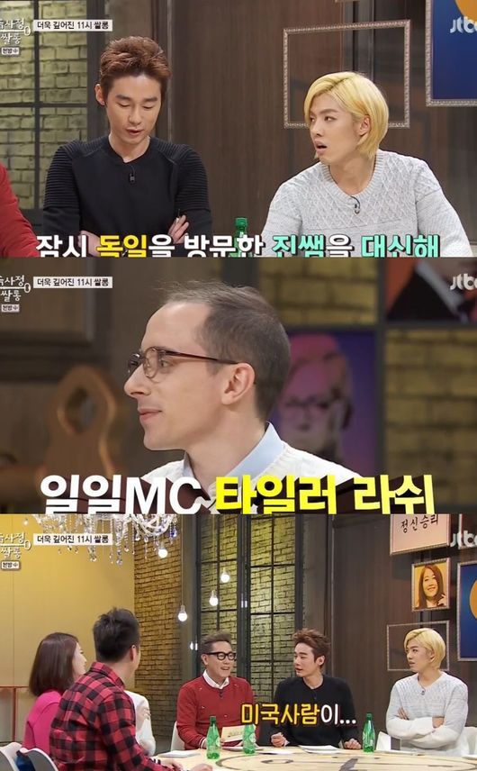 18일 방송된 JTBC '속사정 쌀롱'에서는 독일로 출장을 간 진중권을 대신해 타일러가 출연했다. 타일러는 자신을 소개하며 "1988년생이다. 올림픽 베이비다"고 말했다. 이에 강남은 놀라워하며 "나보다 1살 동생이야?"라고 말했다.