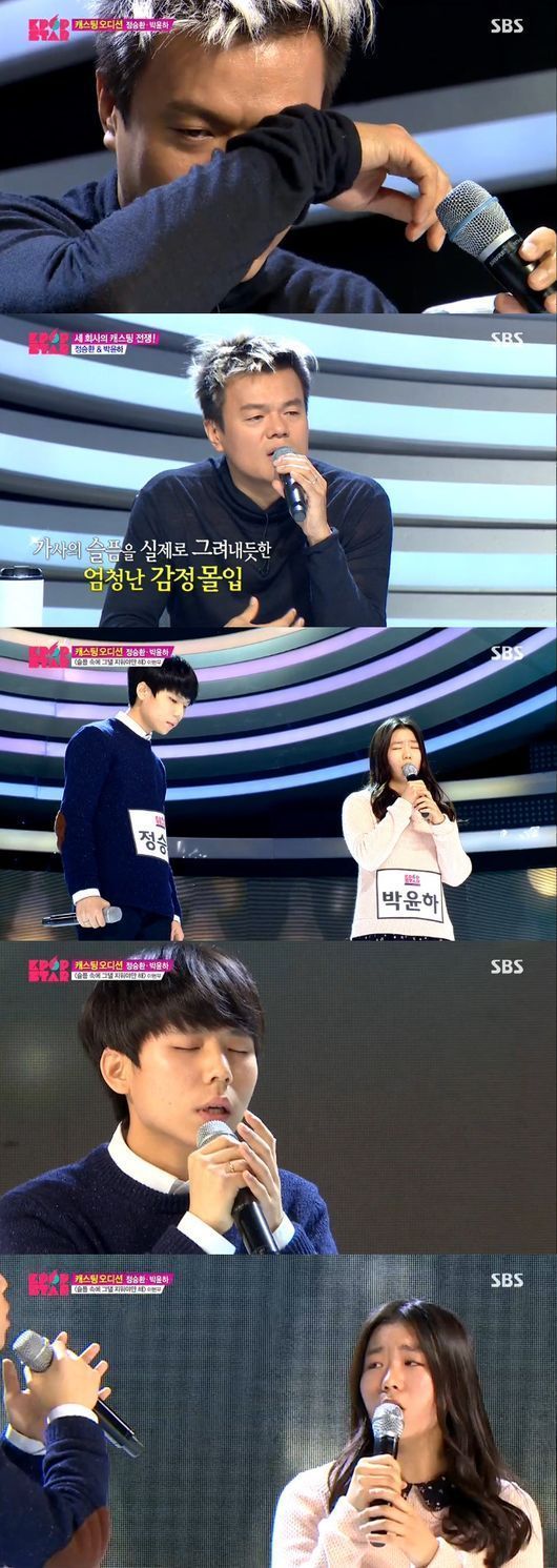'K팝스타4' 박진영을 울린 정승환과 박윤하의 듀엣곡 '슬픔 속에 그댈 지워야만 해'가 9개 음원차트 1위에 올랐다.