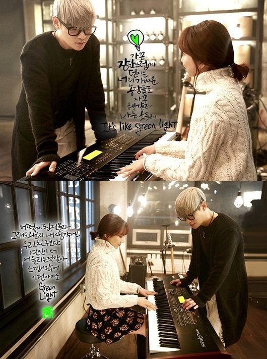 공개된 캘리그라피 이미지에는 주비가 작사한 '가끔 장난스럽게 던지는 너의 가벼운 농담들도 자꾸 헷갈려 나는 흔들려 It's like green light' 가사와 라디가 작사한 '어떻게 될 진 몰라 그래도 왠지 내 생각엔 우린 친구보단 연인이 더 어울리는 것 같아 느낌이 왔어 이건 아마도 Green Light' 등의 가사가 적혀 있다. 각각 남녀의 마음을 표현한 것이 인상적이다.