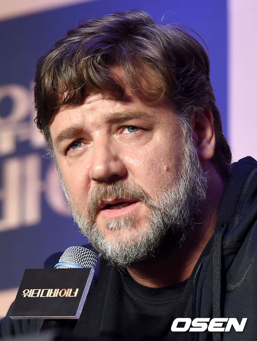 할리우드 배우 러셀 크로우가 질문에 답변하고 있다.