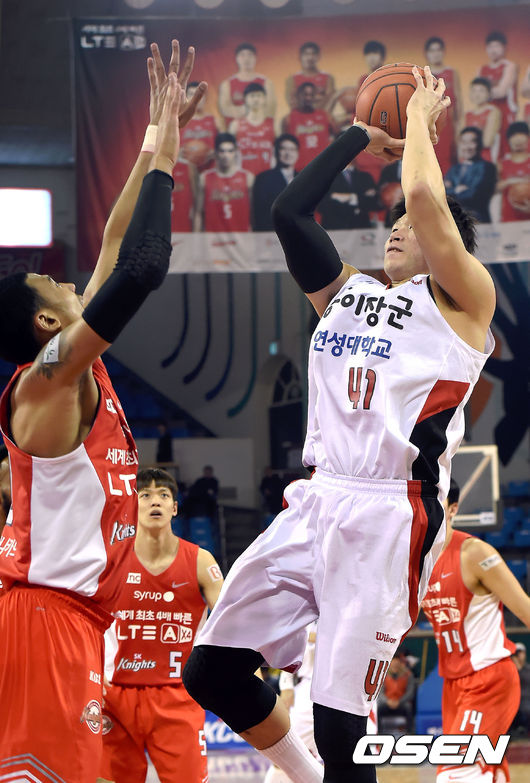 1쿼터 KGC 오세근이 슛을 시도하고 있다.