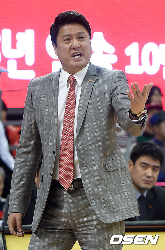 2쿼터 SK 문경은 감독이 선수들에게 이야기를 하고 있다.