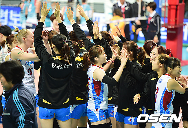 경기후 도로공사 선수들이 승리를 기뻐하고 있다./jpnews@osen.co.kr