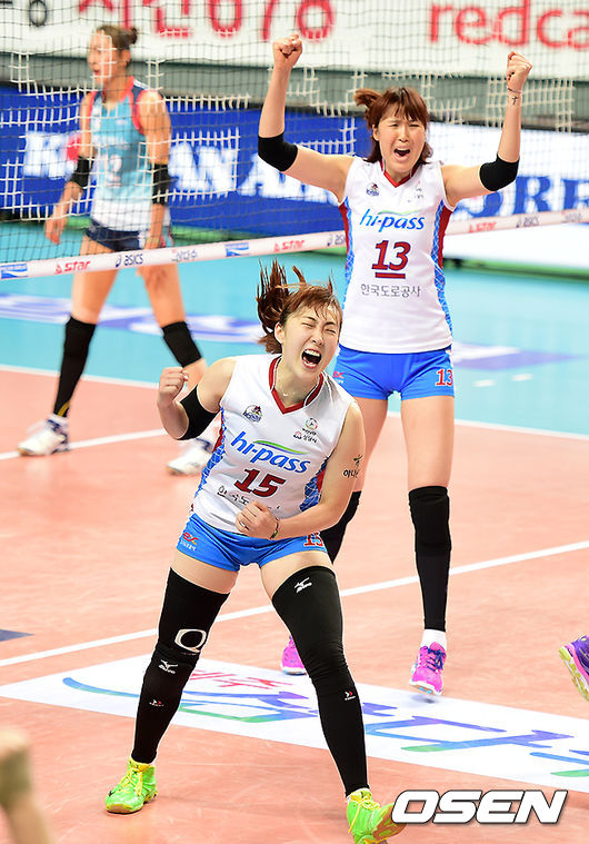 도로공사는 19일 장충체육관에서 열린 NH농협 2014~2015 V-리그 4라운드 GS칼텍스와의 경기에서 3-2(22-25, 25-21, 24-26, 25-17, 15-12)로 승리했다. 승점 2점을 더한 도로공사는 8연승을 기록하며 14승 6패, 승점 40점이 됐다. 여자부 처음으로 승점 40점 도달이다.