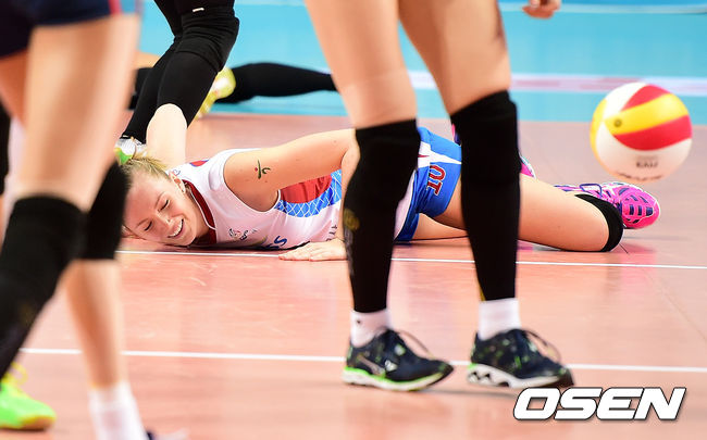 5세트 도로공사 니콜이 볼을 살려내지 못하며 아쉬워하고 있다./jpnews@osen.co.kr