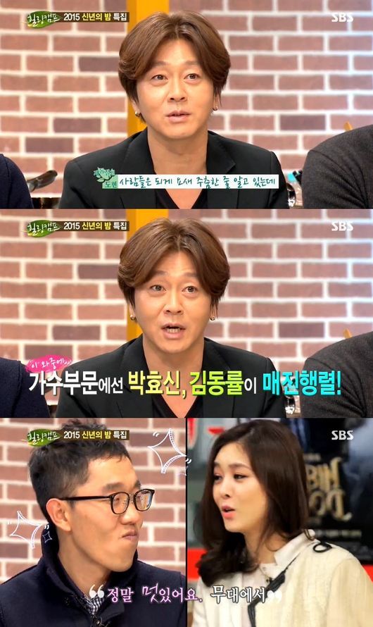 19일 오후 방송된 SBS '힐링캠프 기쁘지 아니한가'에는 백종원, 유준상, 이승엽, 김인권, 옥주현, 윤도현, 이윤석이 출연한 신년의 밤 특집 두 번째 이야기가 전파를 탔다.