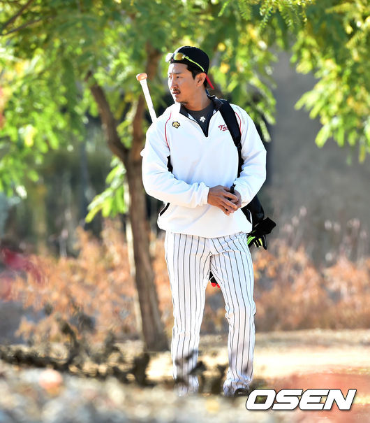 박용택이 배트를 메고 훈련장으로 이동하고 있다./spjj@osen.co.kr