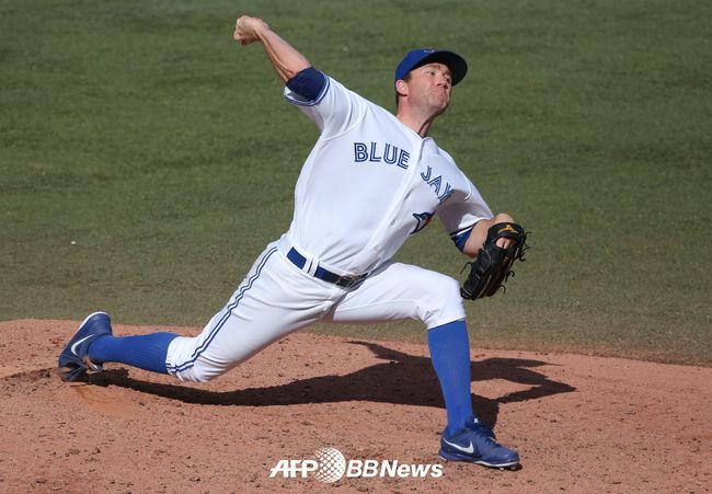 토론토 블루제이스 시절의 케이시 잰슨. FA 미계약 상태로 남아 있어 불펜 보강을 멈추지 않고 있는 LA 다저스와 계약 여부에 관심이 모아지고 있다. ⓒAFPBBNews = News1(무단전재 및 재배포 금지)