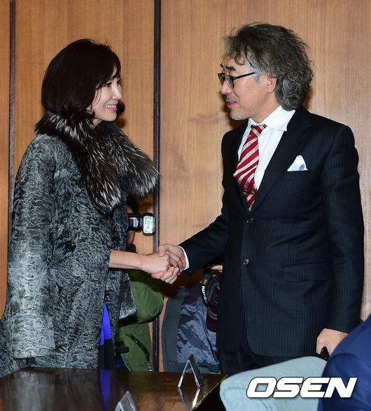 KBS 이응진 TV본부장과 심혜진이 인사를 나누고 있다.
