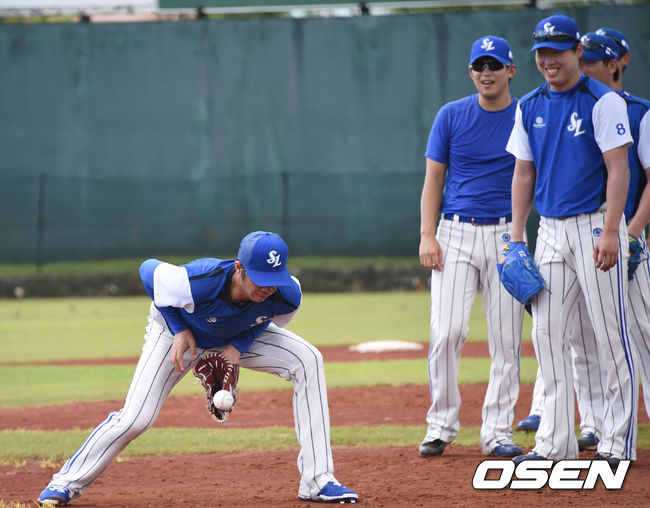 20일 삼성 라이온즈 선수단이 1차 캠프가 차려진 괌 레오팔레스리조트 야구장에서 전지훈련을 하고 있다.