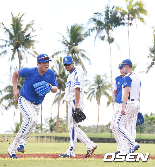 20일 삼성 라이온즈 선수단이 1차 캠프가 차려진 괌 레오팔레스리조트 야구장에서 전지훈련을 하고 있다.