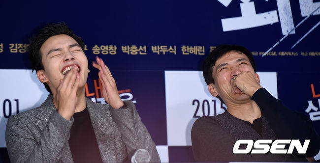 배우 여진구와 유오성이 20일 오후 서울 자양동 롯데시네마 건대입구점에서 열린 영화 '내 심장을 쏴라' 언론배급시사회에 참석해 미소를 짓고 있다.