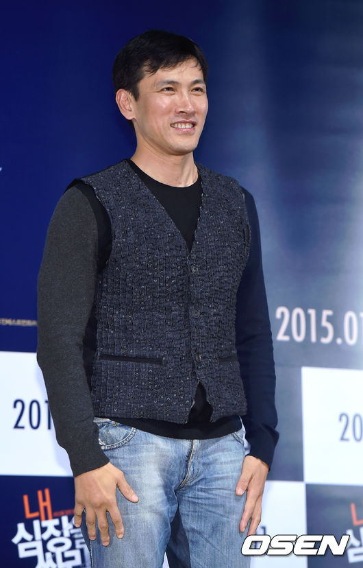 배우 유오성이 20일 오후 서울 자양동 롯데시네마 건대입구점에서 열린 영화 '내 심장을 쏴라' 언론배급시사회에 참석해 포토타임을 갖고 있다.