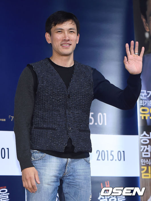 배우 유오성이 20일 오후 서울 자양동 롯데시네마 건대입구점에서 열린 영화 '내 심장을 쏴라' 언론배급시사회에 참석해 포토타임을 갖고 있다.
