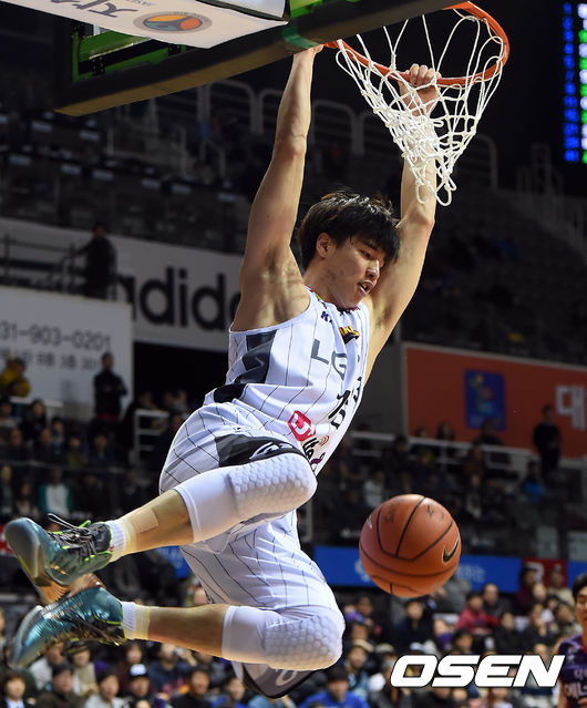 4쿼터 LG 김종규가 덩크를 하고 있다.