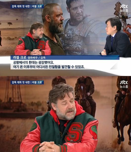 러셀 크로우는 20일 오후 방송된 JTBC ‘뉴스룸’ 2부에 출연해 배우에서 감독으로 변신한 이유와 그간의 출연작에 대한 기억, 할리우드 톱스타로서의 삶 등을 이야기했다.