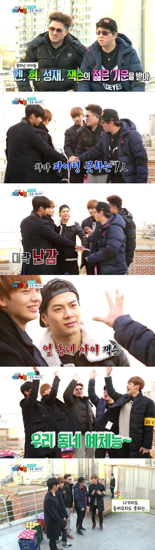 '우리동네 예체능’에 갓세븐의 잭슨이 깜짝 등장했다. 정형돈은 동시간대 ‘룸메이트’에 출연중인 잭슨을 배려, 이 장면을 재치 있게 설명해 웃음을 자아냈다.