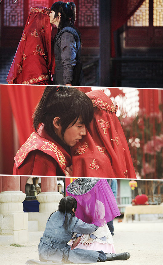 공개된 비하인드 컷 속에는 달려오는 마차에서 오연서를 구하는 장혁의 모습과 붉은 혼례복을 입은 오연서에게 애틋한 포옹을 건네는 장혁의 모습과 붉은 너울을 쓴 오연서에게 만난지 하루 만에 첫 이마 키스를 선사하는 모습이 담겼다.