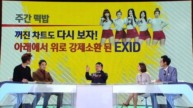 김구라, 강용석, 박지윤, 이윤석, 허지웅 등 예능심판자들은 EXID가 차트를 거꾸로 거슬러 오르며 인기를 얻는 이유 중 하나로 ‘위아래’의 골반춤을 꼽았다.