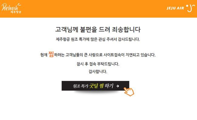 제주항공의 홈페이지가 접속자 폭주로 사실상 마비됐다.