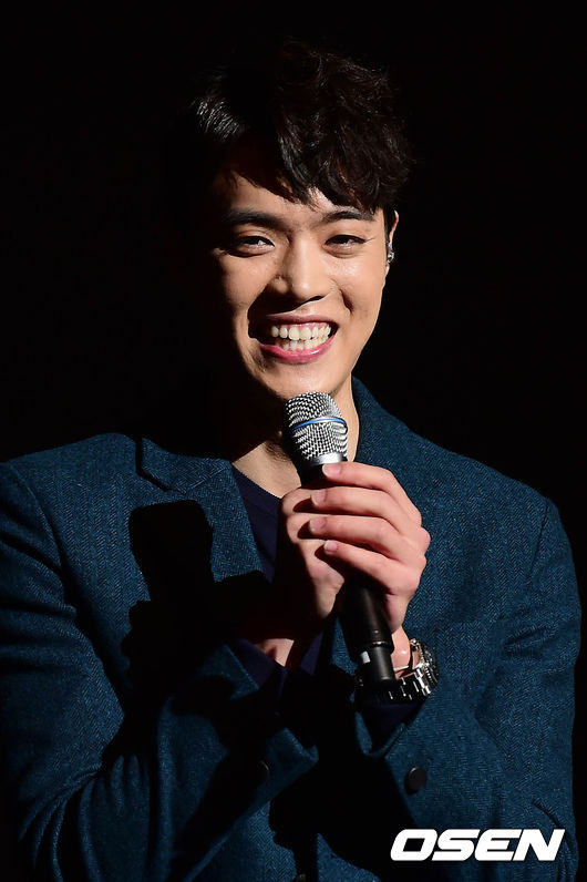 에디킴이 21일 오전 서울 송파구 방이동 올림픽공원 K-아트홀에서 열린 쇼케이스에서 사회자와 이야기를 나누며 미소를 짓고 있다.